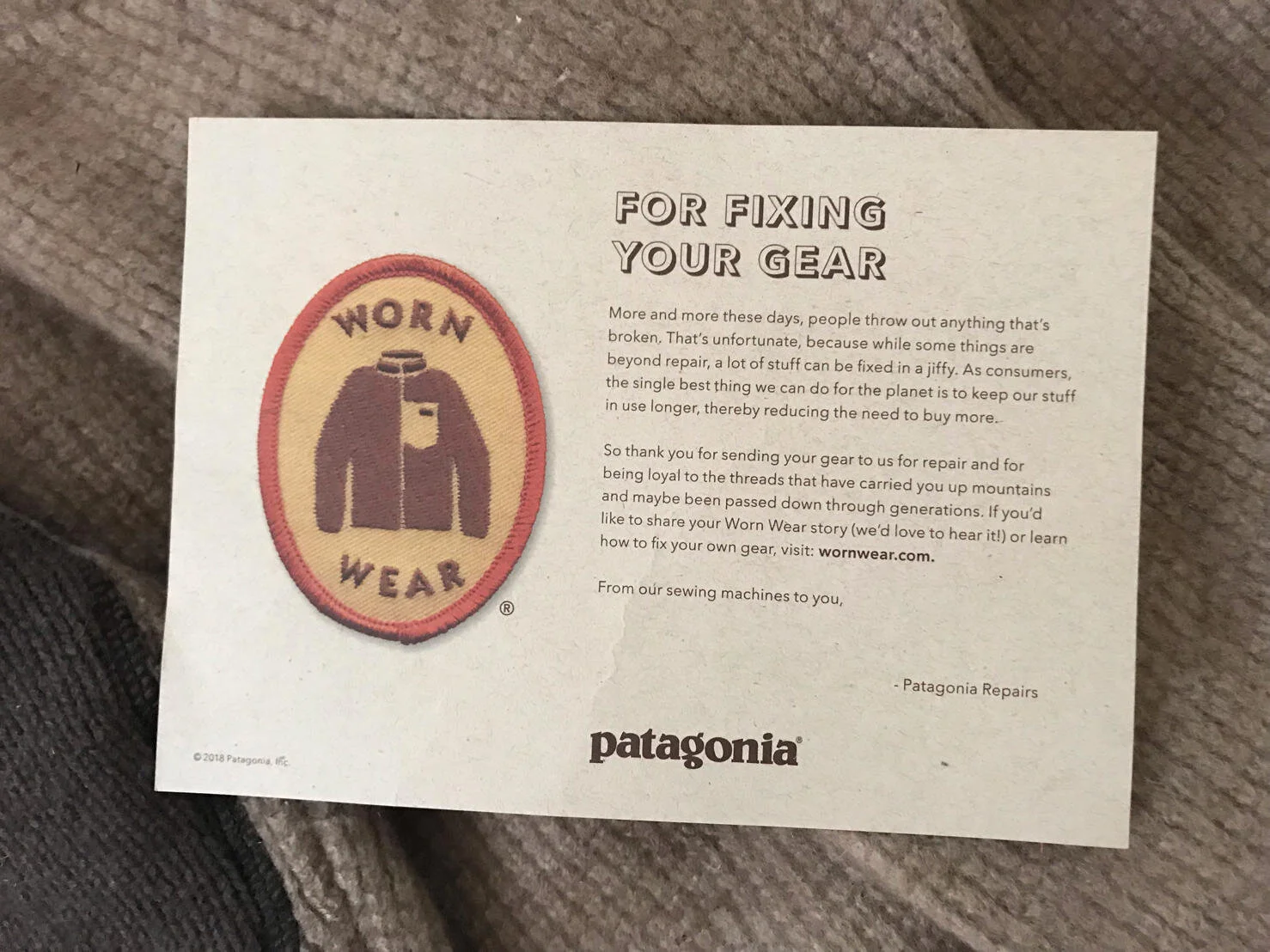 5. There is a card with it thanking you for repairing it.