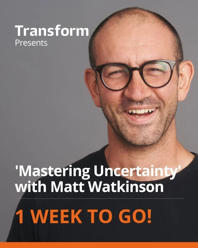 Please join me on my last night in town! I'll be speaking about my new book Mastering Uncertainty with the wonderful Emma Robertson at Transform's office on Great Portland Street next Wednesday, April 12 between 5:00-7:30pm and you're invited.
